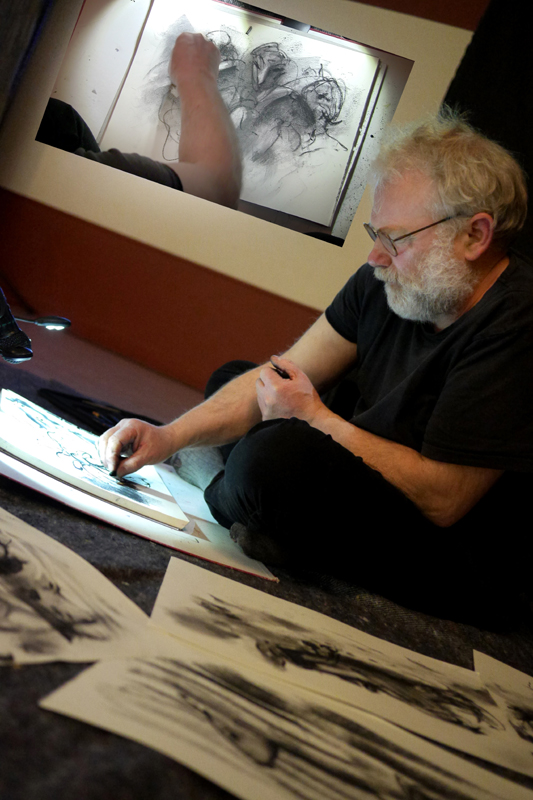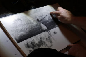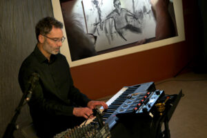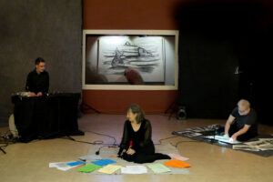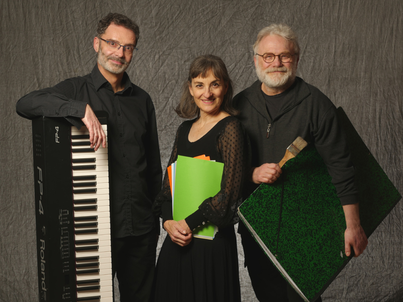 comme les musiciens de jazz, ils vont parcourir leurs gammes… d’images, de sons et de mots, s’écouter pour s’accorder en chemin. La musique donnera le top départ, puis dessins et poèmes nous porteront, ensemble, pour partager un moment unique, imaginé en direct, pour voyager au milieu des songes.